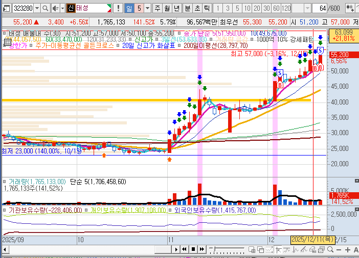 5일선을 벗어나지 않는 대단한 종목이다.