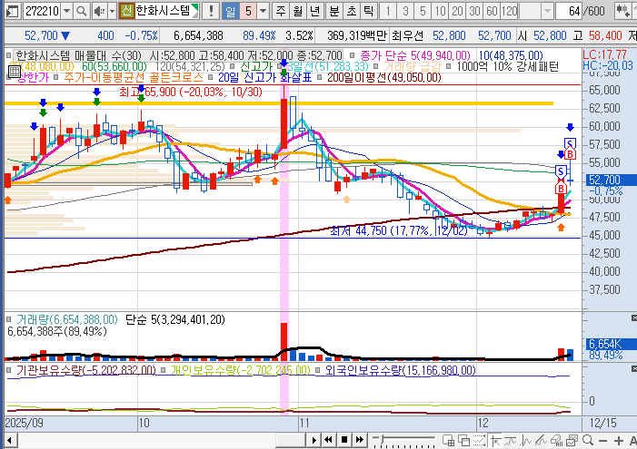 오늘은 지난 금요일부터 야심차게 들어갔다가 물렸던 에임드바이오와 한화시스템을 어떻게 탈출할까 고민했던 날이다.